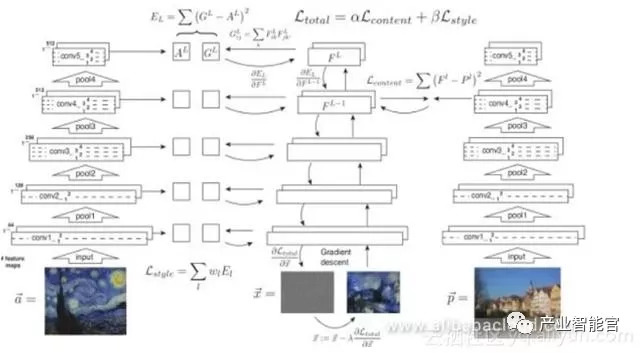 此优化有两个主要目标:第一个是使生成的图像的内容更接近原始图像的内容,而第二个是使生成的图像的风格与指定的风格匹配。风格由Gram矩阵体现,而内容直接由神经元的激活值体现。