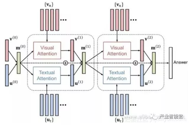 注意使用注意力机制的图像字幕系统可提高视觉问答的性能。注意力机制包括视觉注意(“我在哪里看”)和文本注意力(“我在看哪个词?”)HieCoAtten可以同时或依次创建视觉和文本注意力。DAN在同一空间内投射视觉和文本注意力的结果; 然后它同时产生视觉和文本注意力的下一步。