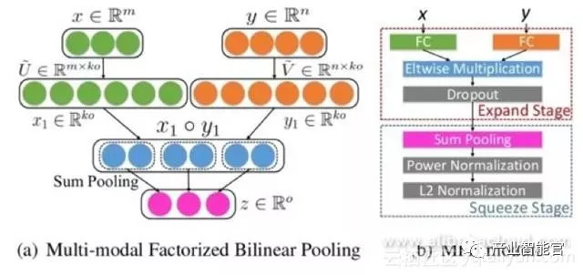 该方法使用视觉特征向量和文本特征向量的外积来捕获每个维度上这些状态的特征之间的关系。为了避免明确地计算双线性汇合的高维度结果,我们可以将在细粒度识别中发现的流线型双线性汇合背后的思想应用于视觉问题回答。例如,MFB使用低速率近似背后的概念以及视觉和文本注意机制。