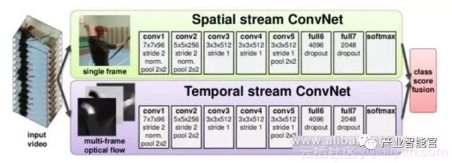 这种类型的方法使用两个独立的网络来区分从视频捕获的图像信息和时间信息。图像信息可以从单帧中的静止图像获得,并且是图像分类的经典问题。然后通过光流获得运动信息,跟踪目标在相邻帧上的运动。