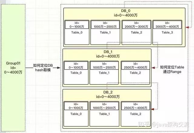 注意:千万不要被DB_1或DB_2中table的范围也是0~4000万疑惑了,这个是范围区间,也就是id在哪些范围内,落地到哪个表而已。
