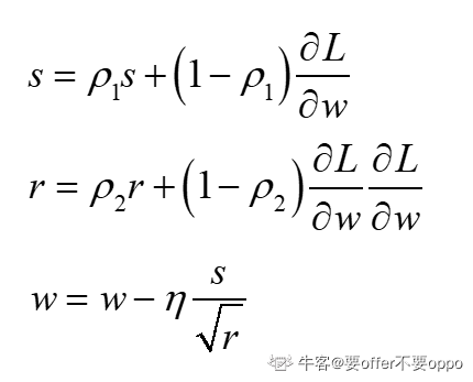 adam综合以上两个优化器的思想,集他们的大成。动量是当前的瞬时梯度越大,那么越快,AdaGrad是如果当前梯度大,就极速削减。其实就好比精确率和召回率他们可以指代不同的指标,而F1分数集合它俩,取了一个均衡。