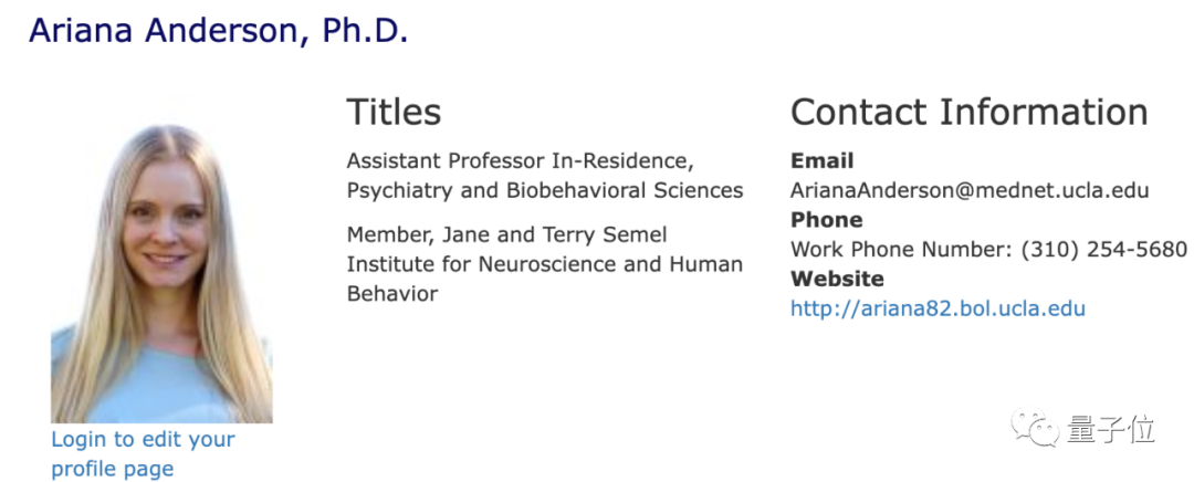 论文一作Ariana Anderson,拥有数学学士学位和统计学博士学位,现任加州大学洛杉矶分校精神病学和生物行为科学副教授。