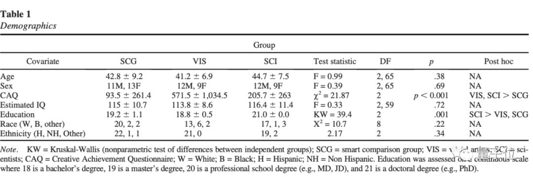 同时研究团队保证,除了创造性这一项变量之外,确保所有实验对象的年龄、族裔、智力等因素大致相同。