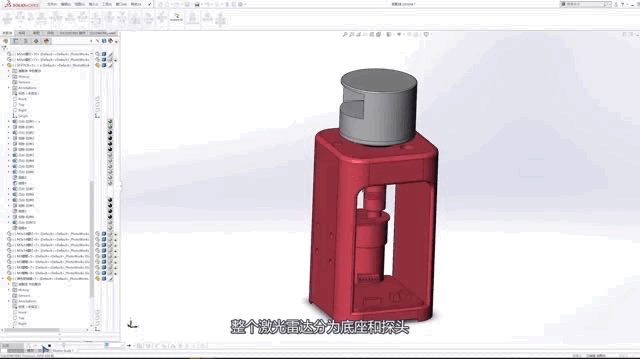 整个激光雷达分为底座和探头,探头和底座通过旋转轴进行连接,激光测距传感器通过螺丝固定在探头基座上。