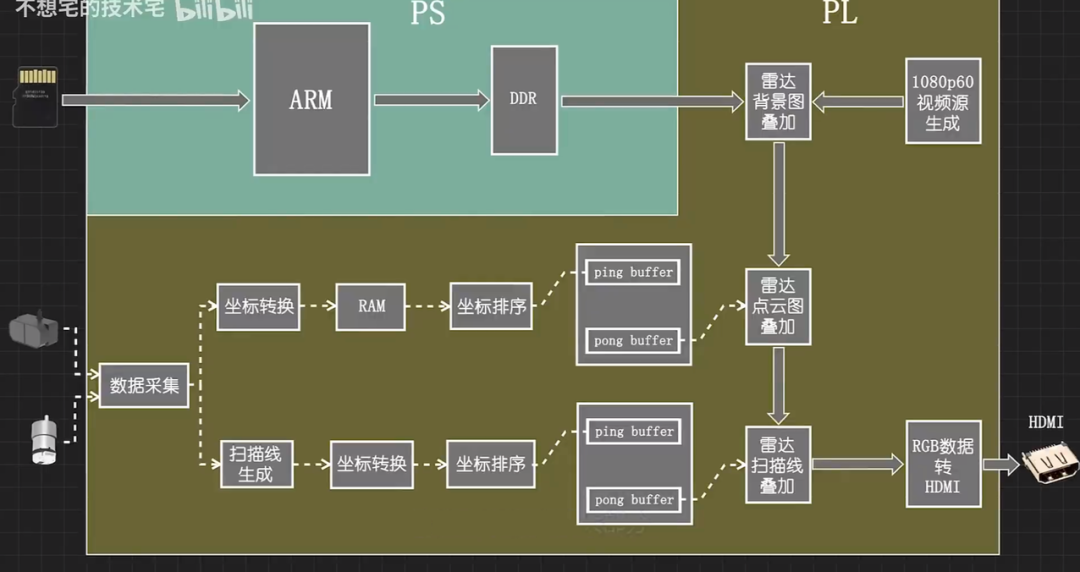 而主要的难度恰恰在于 FPGA 部分。UP 主表示:「要把雷达数据叠加在视频数据流上,费了我不少脑细胞。」