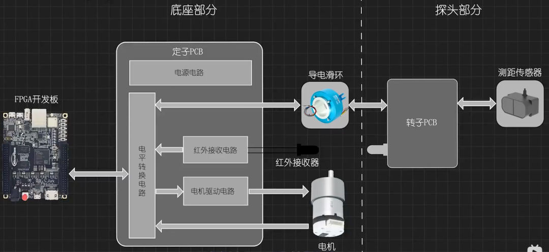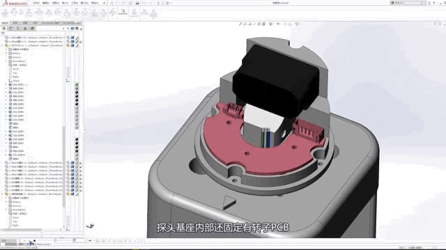 探头基座内部还固定有转子 PCB,底座部分固定有导电滑环、电机和定子 PCB。