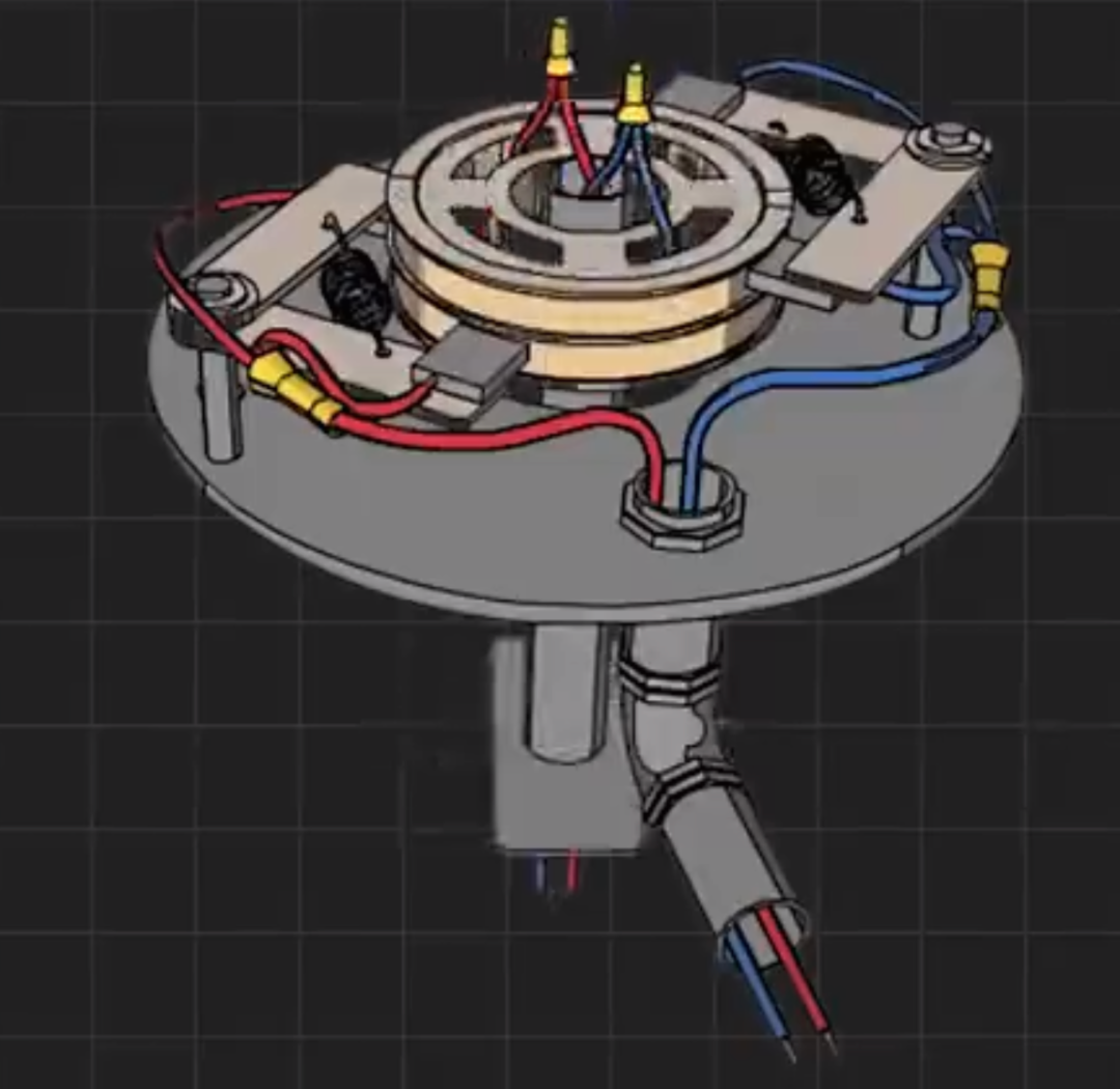 UP 主表示,激光雷达在工作时,探头需要连续旋转,因此探头和底座的信号传输无法用导线连接,否则会引发缠绕问题,他通过导电滑环解决了这个问题。导电滑环内部是一组电刷,可以解决信号线在旋转情况下的缠绕问题: