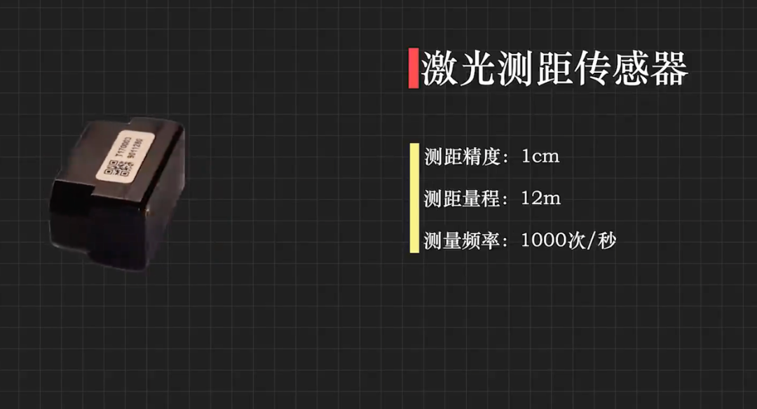 最后,还有一个激光测距传感器,测距精度为 1cm,量程为 12m,每秒钟可以测量 1000 次,输出接口为串口。