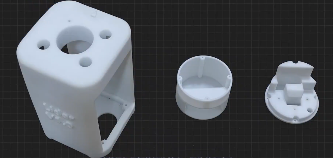 至此,结构设计就完成了。随后将设计好的结构件在 3D 打印软件中添加支撑,然后切片,最后通过 3D 打印机打印出来。打印好的探头基座、探头盖和底座就是这样: