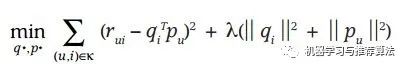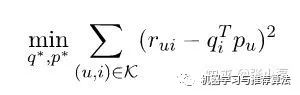 当然提到矩阵分解,人们首先想到的是数学中经典的SVD(奇异值)分解,在这我命名为PureSVD(传统并经典着),直接上公式: