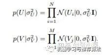 同时,假设用户偏好向量与物品偏好向量服从于均值都为0,方差分别为 ,