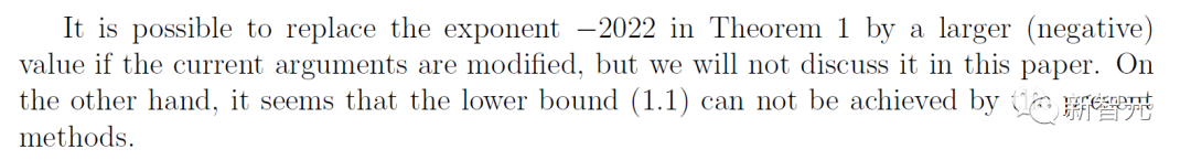 在论文最后,张教授也表示Theorem 1里的指数-2022可能取到更大的负数值,但很难取到-1。