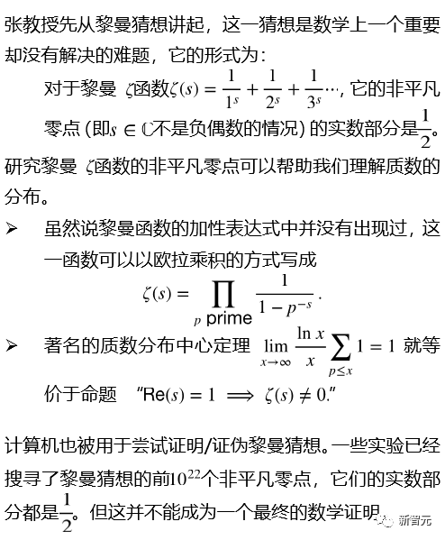 张益唐教授研究的这个猜想,跟数学史上的另一个伟大问题——黎曼猜想有关,后者是数学家波恩哈德·黎曼于1859年提出,关于黎曼ζ函数ζ(s)的零点分布的猜想,是百年来的一大数学难题。