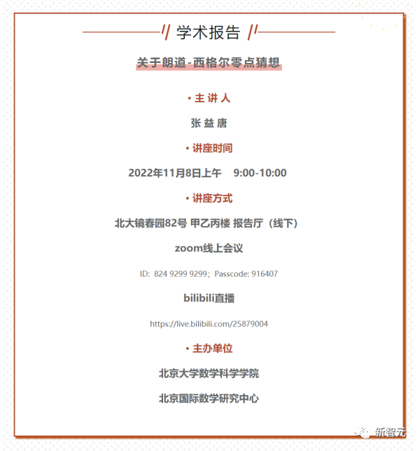 11月8日,张益唐将会面向北大师生专门做一场学术报告,B站会有同步直播,感兴趣的小伙伴可以关注起来。