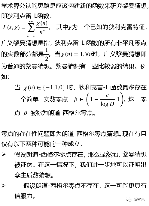 据澎湃新闻援引一位数论学者的解释,以往的很多论文,要假设朗道-西格尔零点猜想成立(也即假设西格尔零点不存在)。