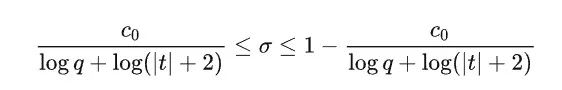 但数学家们希望继续缩减L函数的非平凡零点的存在区域。有人证明出,L函数的非平凡零点基本上都能落在下面公式中的区域: