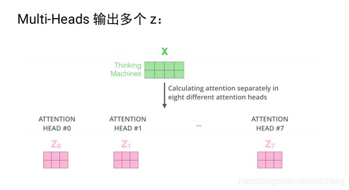 实际中是多个head, 即多个attention(多组qkv),通过训练学习出来的。不同attention关注不同的信息,指代消解 上下位关系,多个head,原始论文中有8个,每个attention得到一个三维的矩阵