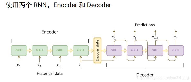 对于翻译,我们不可能要求英语第一个词一定对应法语的第一个词,不能要求长度一样,对于这样一个rnn不能解决这一问题。我们使用两个rnn拼接成seq2seq来解决。