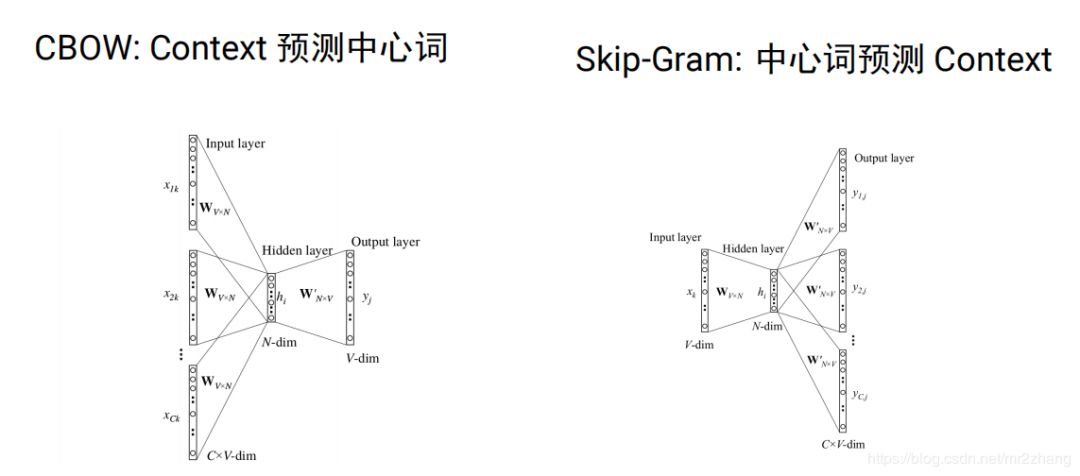 word2vec分为cbow(根据context预测中心词)和skip-gram(根据中心词预测context)两种。