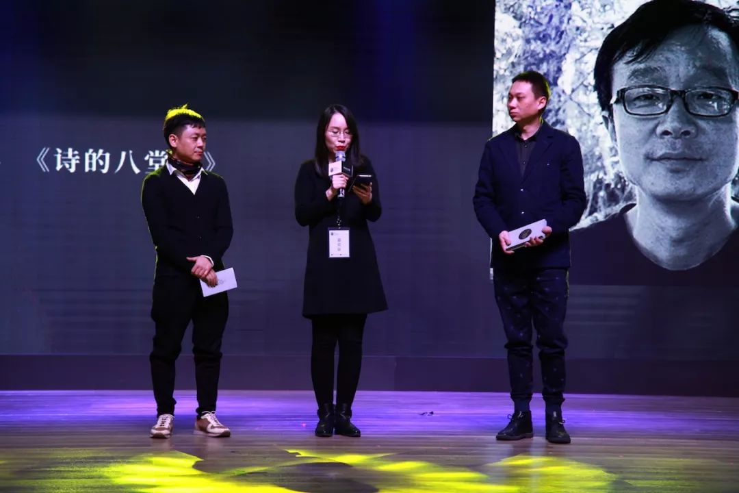 除了颁奖、论坛,颁奖嘉宾、领奖嘉宾让人或惊喜或意外的发言,现场还有多样演出。开场曲《重逢》由“群仙”乐队带来,中西结合的演奏方式,鼓声、长笛、念白、古筝,高昂的诵读与悠扬的琴声笛声交错相合,一下子让刚刚坐定的观众,沉浸到现场。