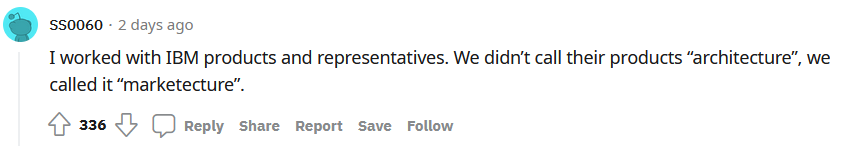 「我认识在IBM工作的人,我们不是把产品叫作「产品架构」,而是「营销架构」。」