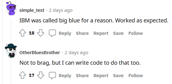 在Reddit的帖子中,码农们的吐槽也很精彩:
