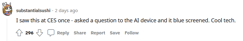 「我在国际电子消费展上体验过一次沃森的产品:问AI一句话,结果蓝屏了。真赞。」