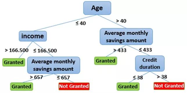逻辑回归和决策树都是用于构建行为记分卡的流行分类技术(监督学习),它们是分析数据集的统计方法,分析独立变量的“预测者”(或解释者)和因变量的“响应”(或结果变量)之间的关系。在我们的例子中,我们试图根据上面给出的输入变量的值来估计给予贷款的概率。为简化起见,我们将变量数量限制在4个预测变量“年龄,收入,平均每月储蓄金额,信用期限”之后。