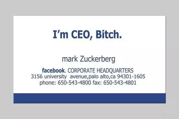 这一点,与Instagram“真正的CEO”扎克伯格截然不同。Facebook于2004年2月推出,两个月后便售出了第一个广告。诚然,当年的Facebook广告与如今推动公司发展的News Feed广告几乎没有什么相似之处。但扎克伯格一直以来的直觉是,不仅要打造一款产品,还要打造一家公司。这一点在这位傲慢的CEO著名的名片上有所展示: