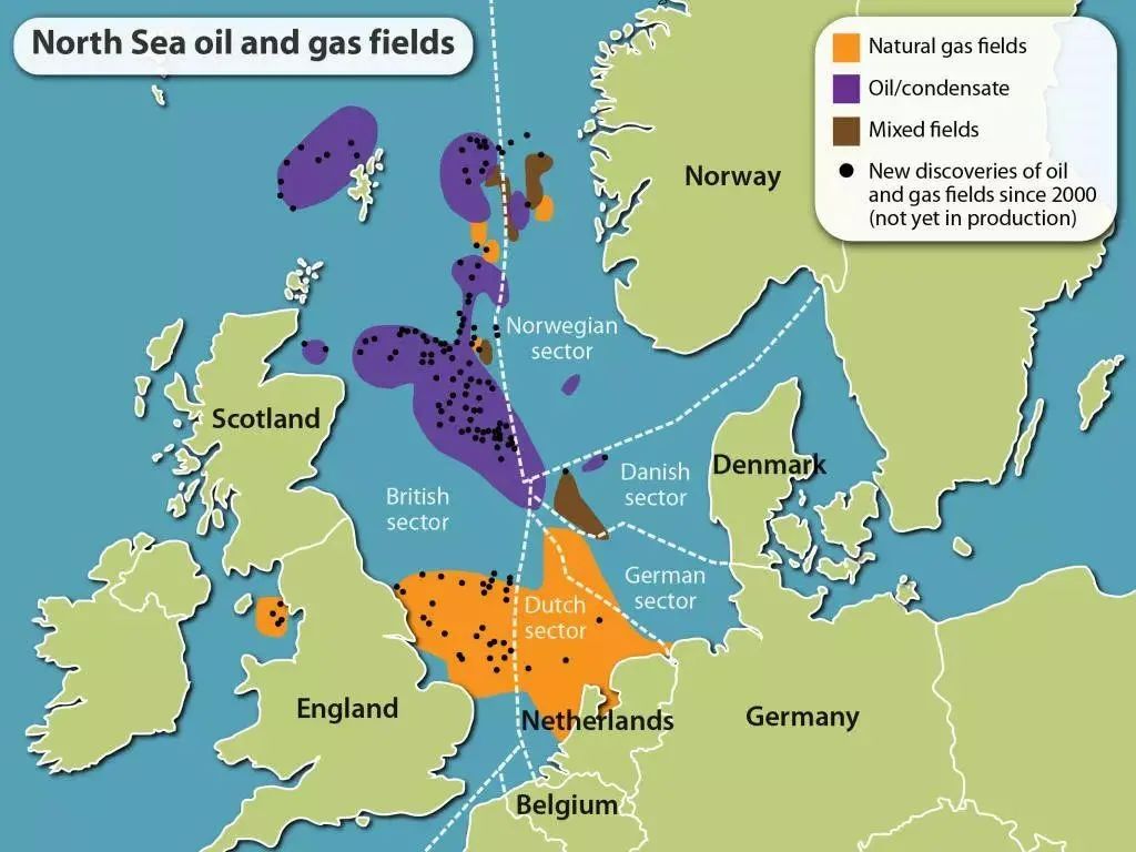 荷兰人挖了之后才知道,北海油田是世界上最大的海洋油田!直至今日,北海油田每日能产原油 600 万桶,世界原油市场 6.4% 的供应来自于此!