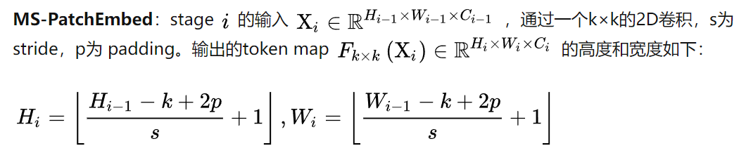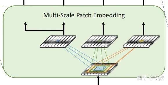 通过改变stride和padding来调整token的序列长度。也就是说,可以输出具有不同patch大小的相同大小(即分辨率)的特征。因此,作者并行地形成了几个具有不同卷积核大小的卷积patch embedding层。例如,如图1所示,可以生成相同序列长度的不同大小的vision token,patch大小分别为3×3,5×5,7×7。