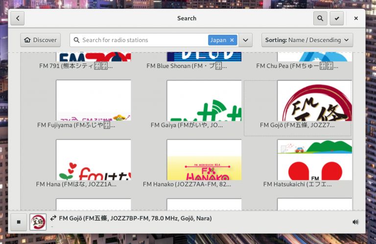 Gradio 是一个简单的收音机,它允许你搜索和播放网络电台。你可以按国家、语言或直接搜索找到它们。额外地,它可视化地集成到了 GNOME Shell 中,可以与 HiDPI 屏幕配合使用,并且可以选择黑暗主题。
