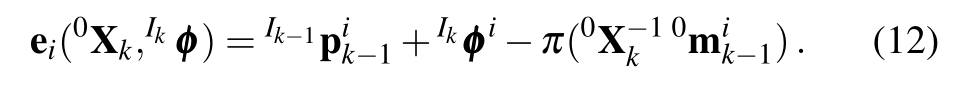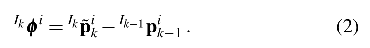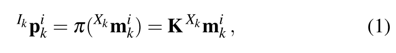 定义Ik为与相机在k时刻捕捉到的图片左上角的参考系。通过投影函数 (.)得到齐次三维点IkPik在坐标系Ik上的像素位置: