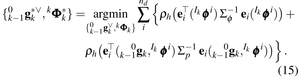 通过对 进行李代数参数化,将(8)代入(7),得到最小二乘代价的解为: