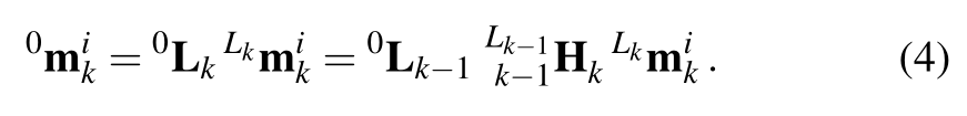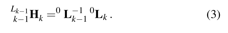 方程(6)是我们的运动估计方法的核心,因为它以无模型(model-free)的方式通过驻留在目标上的点表示刚体位姿变化,而不需要在估计中包含目标的三维位姿作为随机变量。第3.2.2节详细介绍了如何根据上述方程估计刚体的位姿变化。方程中的0k-1Hk 表示全局参照系中目标(提取出的)点的运动。对于本论文的其余部分,为了便于阅读,我们将这个量称为目标的位姿变化或目标的运动。