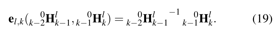 设 = x M H代表图中所有节点,利用 对X和H使用李代数参数化(将(8)代入(16)和(17),将(20)代入(18)和(19),得出最小二乘代价的解为: