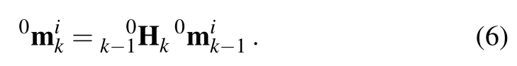 设0mik为第i个三维点在k时刻的齐次坐标,0mi=[mix,miy,miz,1]T IE3,i (点集).我们在机器人/相机框架中描述一个点的形式例如:xkmik=0X-1k0mik。