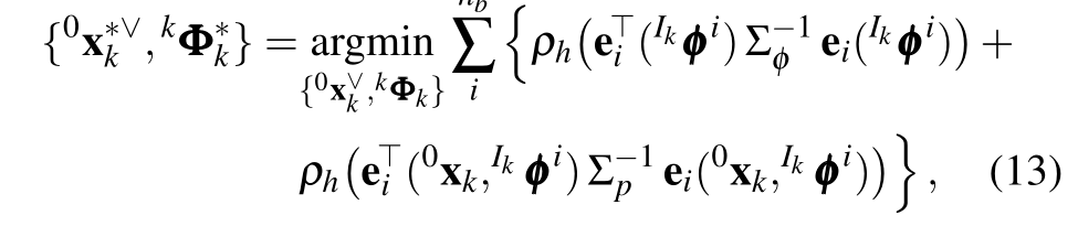 与相机位姿估计类似,构造基于重投影误差的代价函数可以求解目标运动。使用公式(6),目标的三维点通过重投影对应到图像Ik中二维点的误差项为: