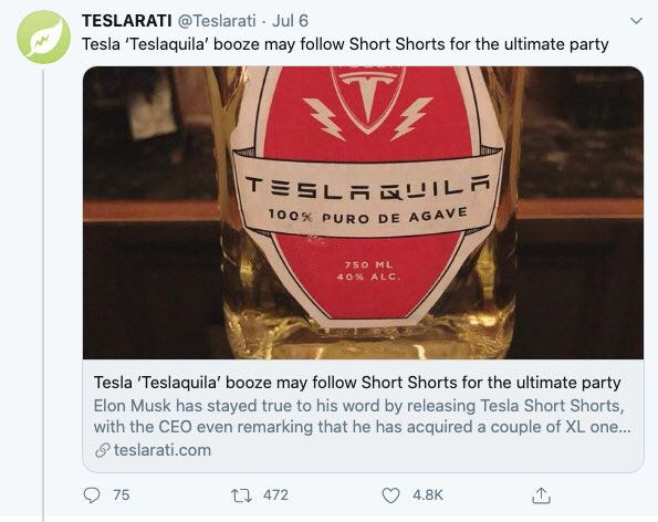 马斯克:特斯拉牌龙舌兰Teslaquilla即将推出