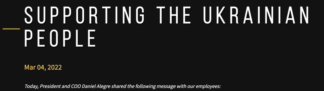 Alegre在信中说,「我们正在尽一切可能帮助受到这场战争直接影响的员工和他们的家人」。