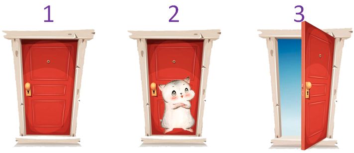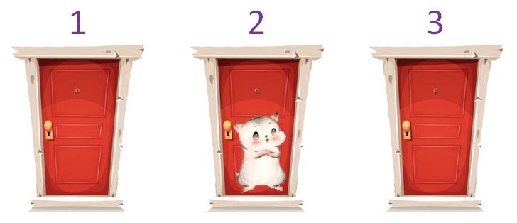 此时主持人给了参与者重新选择的机会:可以坚持刚才选择的门(在图中是2号门),也可以换另一扇没有打开的门(在图中是1号门)。