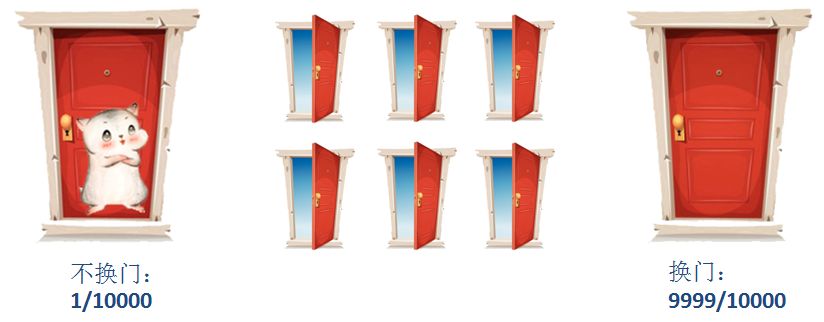 思考一个更加极端的例子,假如我们的游戏中有10000扇门,而不是3扇门。