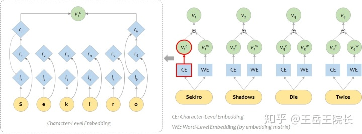 BI-LSTM 即 Bi-directional LSTM,也就是有两个 LSTM cell,一个从左往右跑得到第一层表征向量 l,一个从右往左跑得到第二层向量 r,然后两层向量加一起得到第三层向量 c