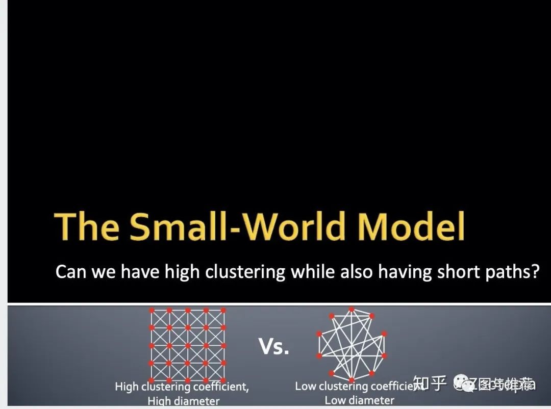 随机图的聚合系数很小,直径很大。这才是和真实网络最大的差异之处。所以能不能有【高聚合系数+小直径】?首先来分析聚合系数反应的本质是什么。