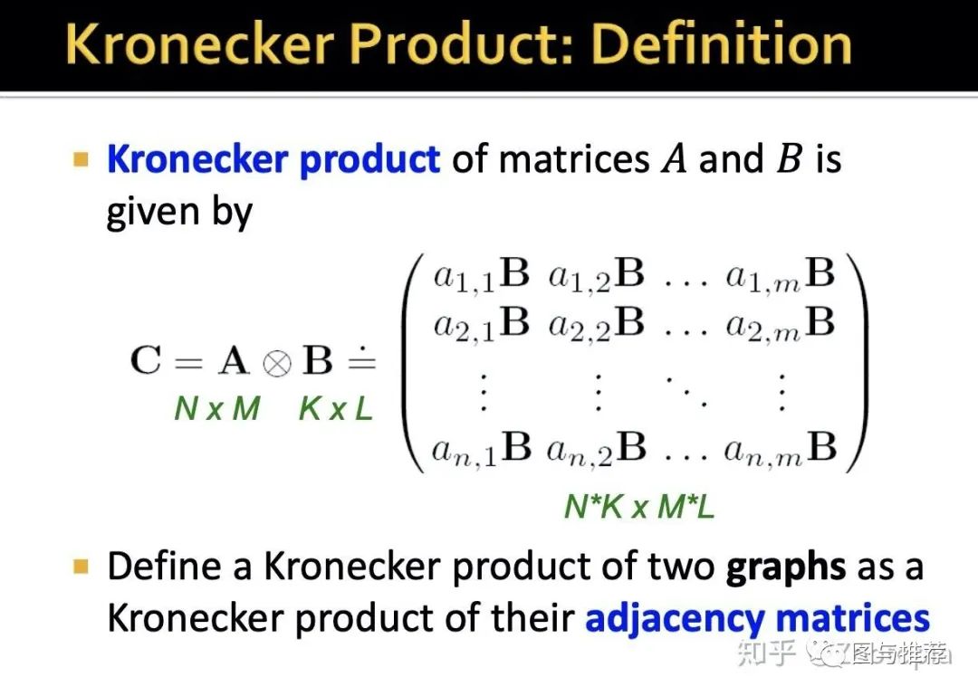 这个积的定义基本上大家在很多数学书上都有看到,这个积的结果是明显放大了原有的矩阵的阶。那么对于在图中的推广就是利用图的邻近矩阵来做kronecker积