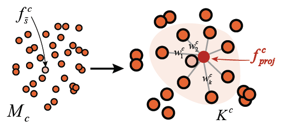 CE 模块采用自编码器结构,将人脸草稿分为五部分(左眼、右眼、鼻、嘴、其他部位)作为五个特征描述符,投影到局部线性的流形空间。每个部位的流形空间由数据库中大量样本编码的特征向量构成。输入的手绘草图样本特征向量则作为点样本投影到这个空间中寻找近邻,通过线性组合重构成来进行优化草图输入,如图四所示。
