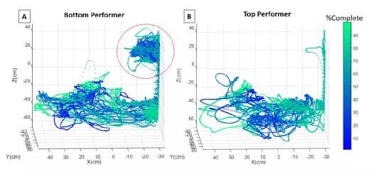 (两个不同医生的手术操作轨迹,被传感器记录下来