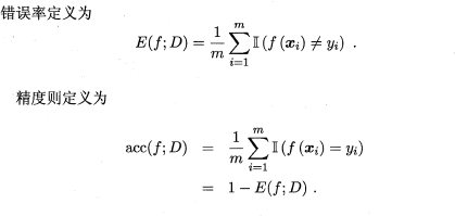 在分类任务中,即预测离散值的问题,最常用的是错误率和精度,错误率是分类错误的样本数占样本总数的比例,精度则是分类正确的样本数占样本总数的比例,易知:错误率+精度=1。