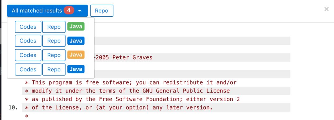 当你放到其中一个变量名上时,可以看到与此变量相关的更多信息。比如,【Repo】链接到包含用这个名字命名变量的资源地址;【Codes】可以直接看到源码;